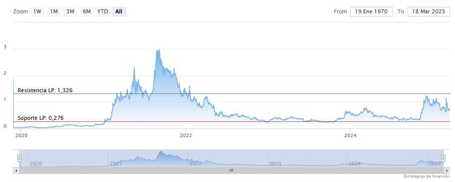 Trazando los retrocesos de Fibonacci desde el máximo histórico de 3.0984 dólares, el gráfico revela puntos de control adicionales por encima de la resistencia actual. El nivel de Fibonacci de 23.60% en 0.8990 dólares se erige como el límite más crucial si los alcistas logran superar los 0.78 dólares. Más allá de eso, 1.3193 dólares (38.2%), 1.6590 dólares (50%) y 1.9987 dólares (61.8%) representan objetivos más distantes vinculados a escenarios de recuperación más amplios.