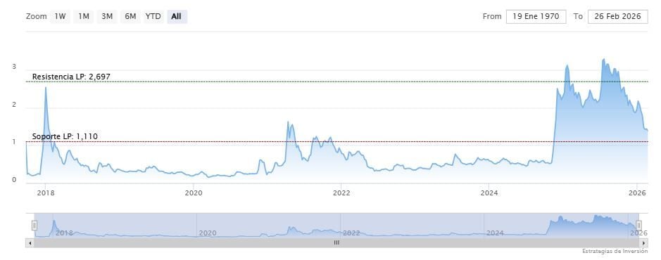 El soporte a mediano y largo plazo se encuentra en los 1.11 dólares. Mientras, los indicadores de Ei se muestran mixtos.