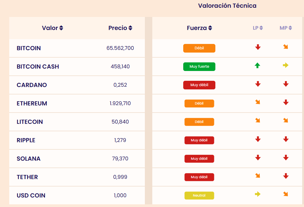 Pero esto no ha sido en un día, podemos ver cómo los indicadores de fuerza y tendencia de las principales criptomonedas. Desde luego apenas se debería tener Bitcoin Cash, el resto están todas débiles y muy débiles, pero desde hace mucho tiempo que están así.
