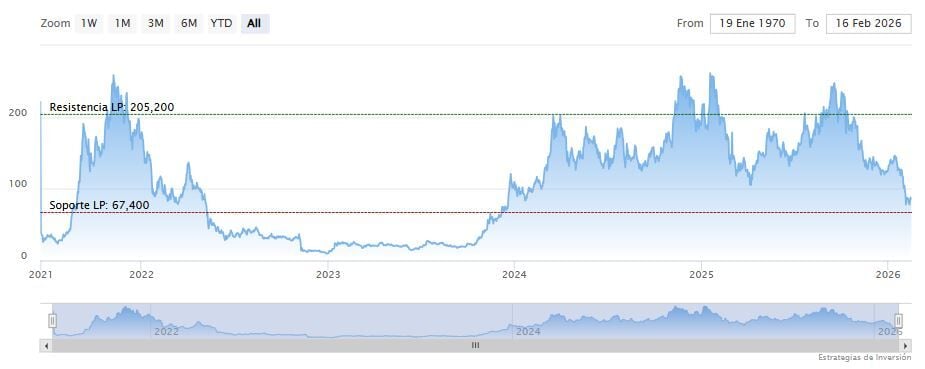 La capitalización de mercado se mantiene por encima de los 48 mil millones de dólares y el volumen diario se sitúa cerca de los 3.92 mil millones de dólares. Por lo tanto, si bien el precio ha bajado, la participación no se ha agotado. Simplemente se está orientando más hacia el posicionamiento apalancado en lugar de la acumulación al contado.