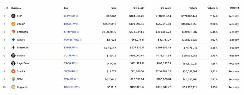En este punto, el volumen de operaciones de XRP solo en Upbit alcanzó los 526.8 millones de dólares, superando el volumen combinado de BTC en todas las principales bolsas de Corea del Sur. Porque el volumen de transacciones de Bitcoin en las cinco principales bolsas ronda los 282 millones de dólares.
