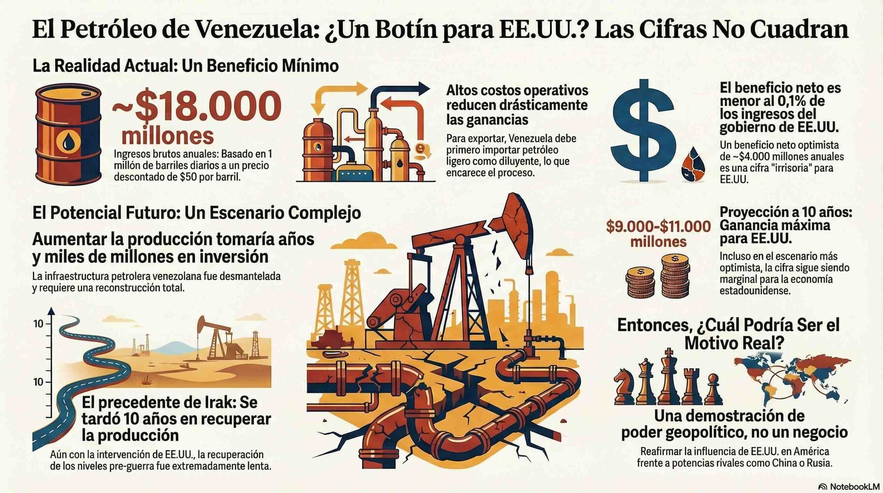 La idea de que EE.UU. actúa siempre movido por un afán de lucro económico inmediato —y más concretamente petrolero— forma parte de una visión del mundo que reduce toda política exterior a una versión del Monopoly. Pero cuando uno analiza las cifras del negocio petrolero en Venezuela, esa narrativa hace aguas. Y no por ideología, sino por matemáticas.