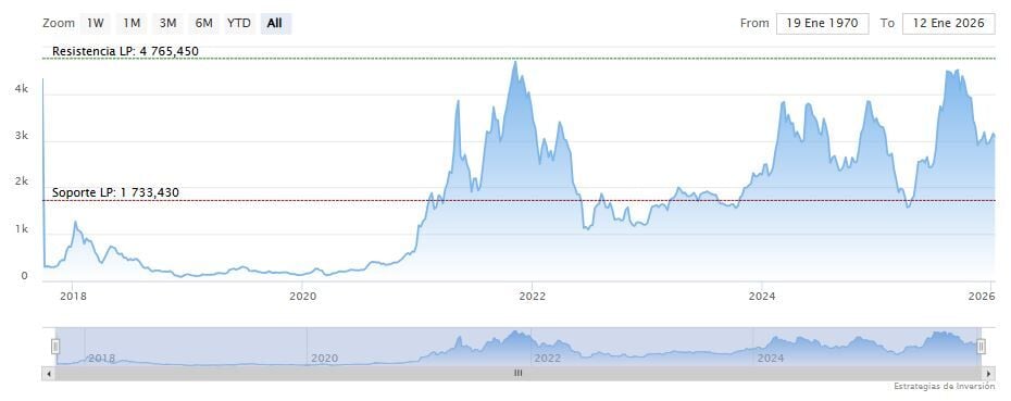 La resistencia a mediano plazo se encuentra en los 3.916 dólares. Mientras, los indicadores de Ei se muestran mixtos.