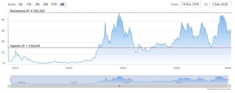 La resistencia a mediano plazo se encuentra en los 4.252,57 dólares. Mientras, los indicadores de Ei se muestran mixtos.