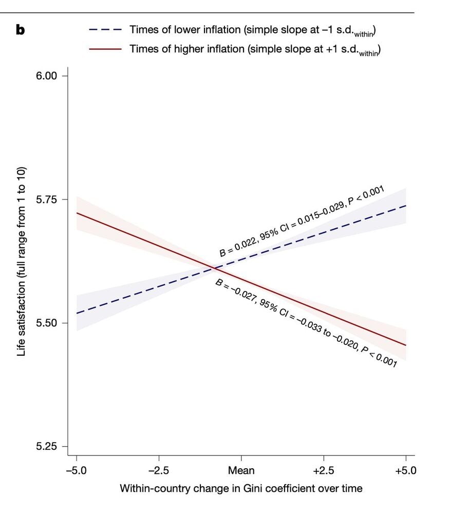 Hay otra conclusión que me parece impresionante y que desmonta décadas de políticas públicas que han puesto el foco en la igualdad como objetivo en sí mismo. Porque si la desigualdad no afecta negativamente al bienestar en entornos de precios estables, entonces la redistribución pierde su principal justificación emocional.
