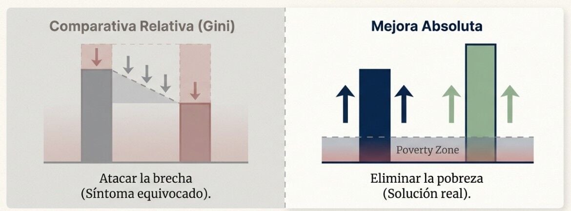 Este estudio no sugiere que debamos abandonar a los pobres. Al contrario, señala que habría que erradicar la pobreza absoluta. Pero no con subsidios o controles de precios —que empeoran la inflación—, sino creando condiciones de crecimiento real, inversión, productividad y libre competencia.