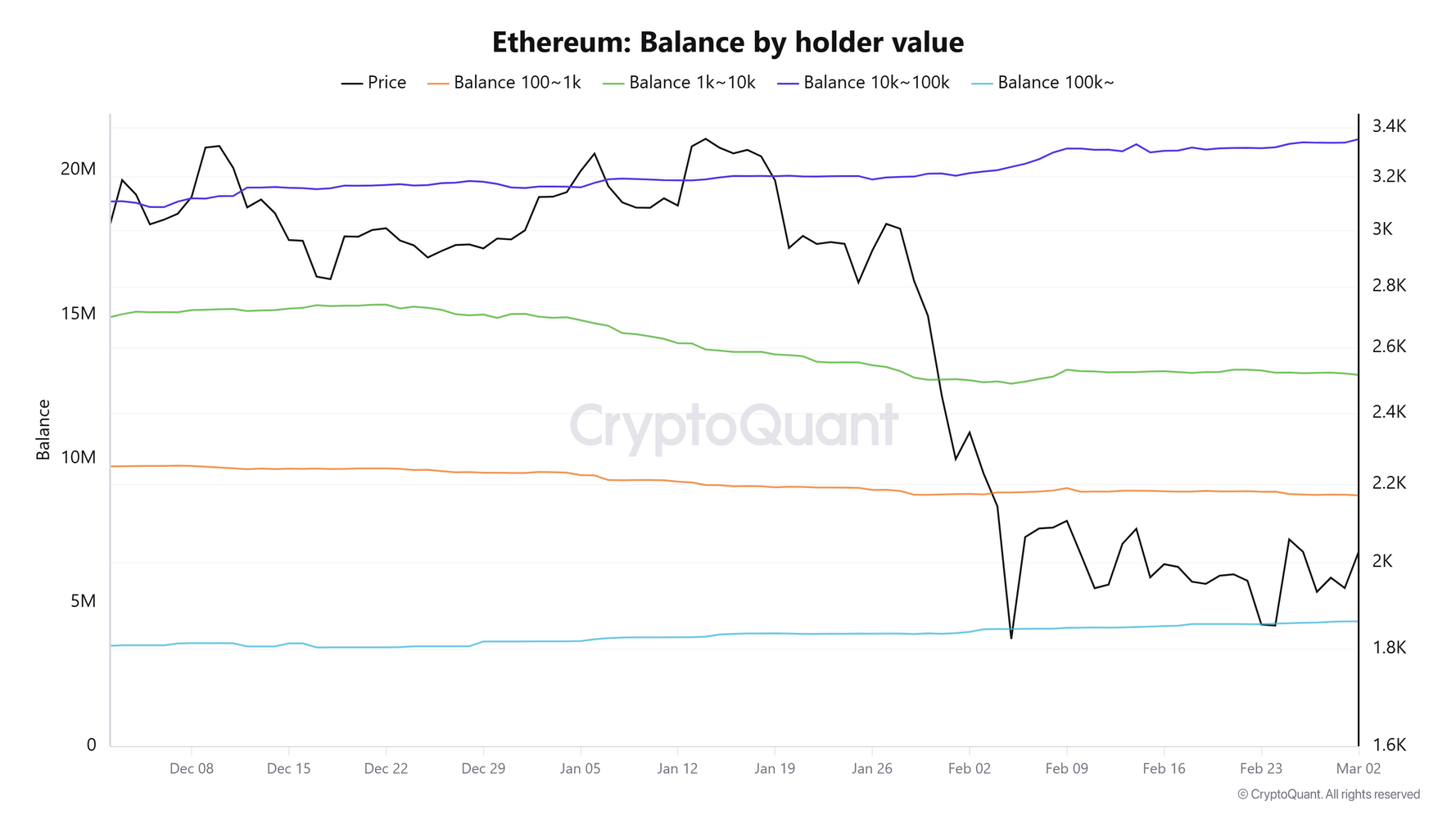 Mientras tanto, los monederos con entre 100.000 y 1.000 y entre 1.000 y 10.000 ETH se deshicieron colectivamente de 210.000 ETH durante el período, continuando su patrón reaccionario al sentimiento del mercado.
