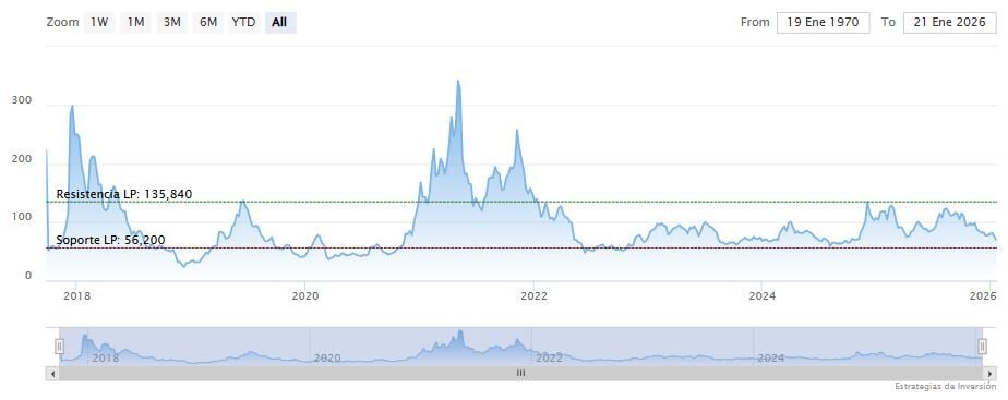 El soporte a mediano plazo se encuentra en los 66.88 dólares. Mientras, los indicadores de Ei se muestran mixtos.
