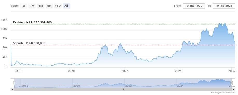 El soporte a mediano y largo plazo se encuentra en los 60.500 dólares. Mientras, los indicadores de Ei se muestran mixtos.