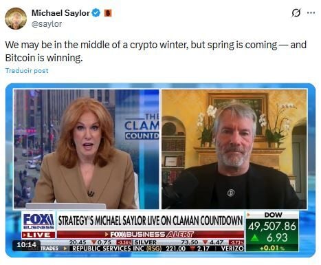 La caída del precio de Bitcoin (BTC) ha asustado a los inversores, no así al CEO de Strategy Rg-A, Michael Saylor. El mismo ha señalado en una entrevista en Fox Business que la próxima temporada está cerca. Incluso que esta caída es más leve que las anteriores y es probable una recuperación rápida agregando que "se acerca la primavera y Bitcoin está ganando", según Christian Encila en News BTC.