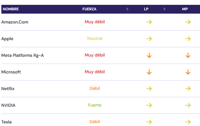 Pues en Estrategias de Inversión seguimos semanalmente a las 7 Magníficos en el área premium, tanto a nivel de indicadores cómo a nivel de análisis, por lo que deben estar atentos a las cambios de tendencias.