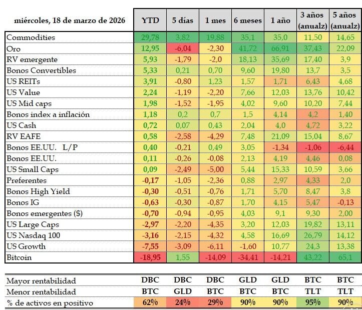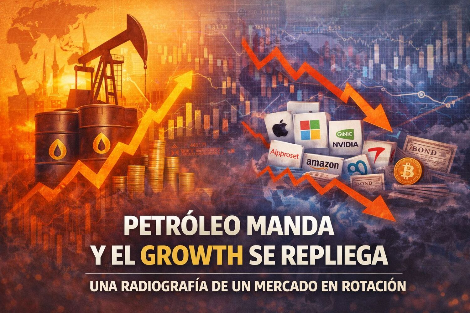 Estamos asistiendo a una rotación clara desde activos de growth hacia activos reales, con las commodities, con el petróleo directamente arrasando. Mientras tanto, algunas de las estrellas de los últimos años empiezan a mostrar fatiga.