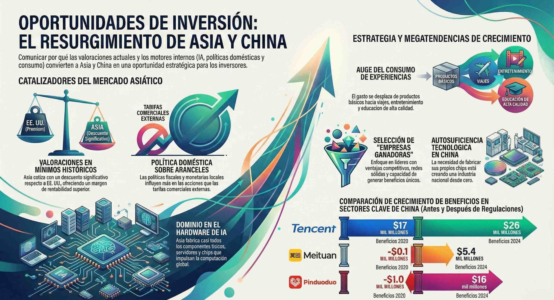 El panorama de inversión en Asia y China presenta una oportunidad única fundamentada en 3 motivaciones principales como valoraciones históricamente bajas, el crecimiento de la clase media y una resiliencia inesperada ante las tensiones comerciales internacionales. A pesar de las preocupaciones por la reintroducción de aranceles bajo la administración Trump, el análisis de datos históricos y económicos indica que la política doméstica es un motor mucho más potente para los mercados asiáticos que las barreras comerciales externas.