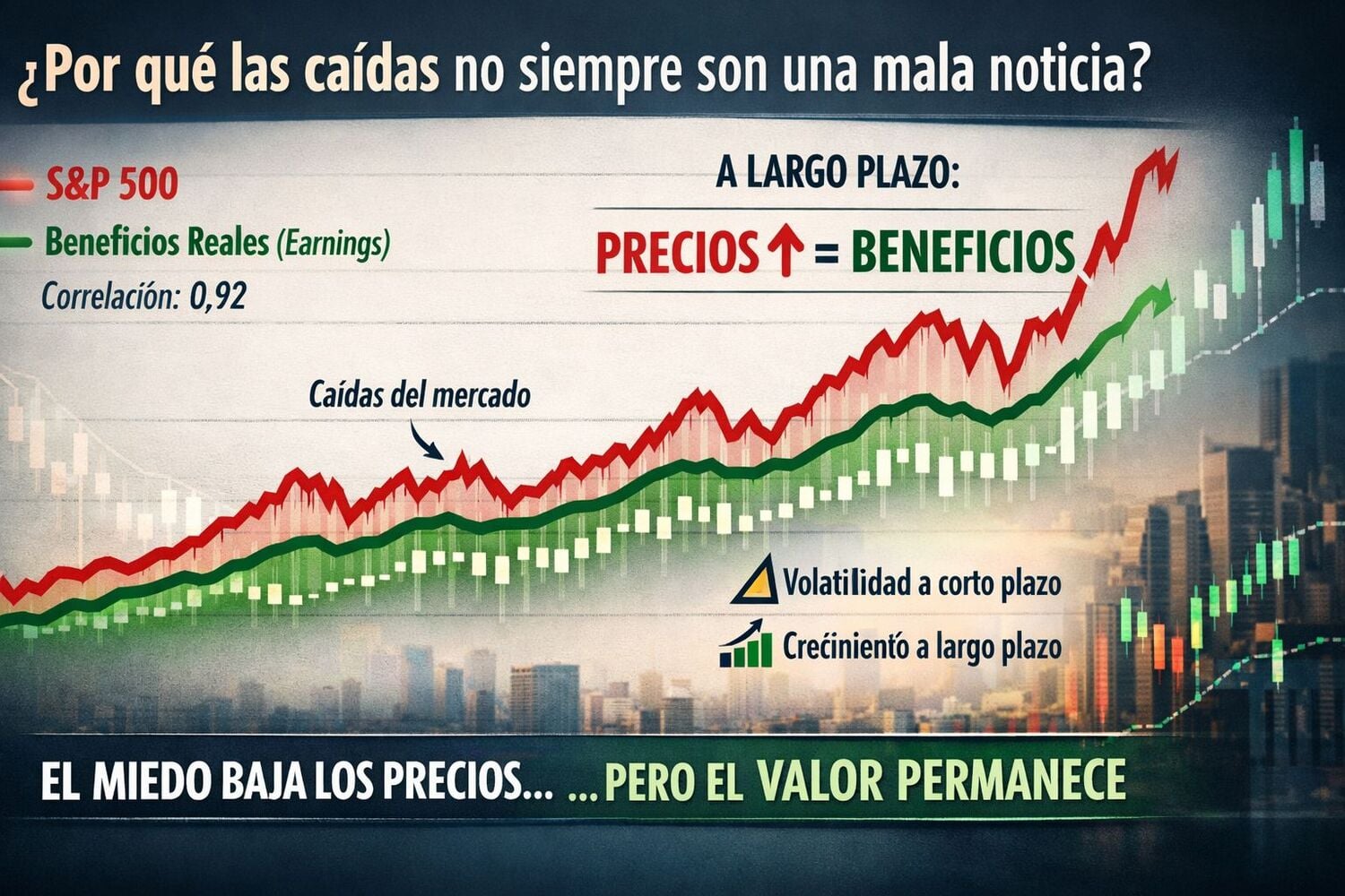 Pero si la bolsa cae por miedo, por ruido macro, por shocks geopolíticos o por una compresión temporal de múltiplos, mientras el motor de beneficios de largo plazo sigue vivo, entonces esas caídas pueden convertirse en una oportunidad muy interesante.