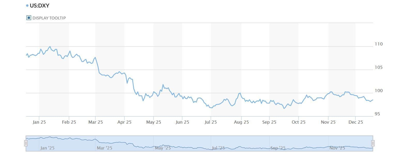 El Dólarha sido la gran decepción de 2025. Uno de los grandes fracasos de las previsiones pasan por el cambio de la moneda líder frente al euro. La estimación inicial era que se llegara a la paridad entre las dos divisas pero lo cierto es la relación entre ambas está a punto de cerrar el ejercicio por encima de las 1,17 unidades.
