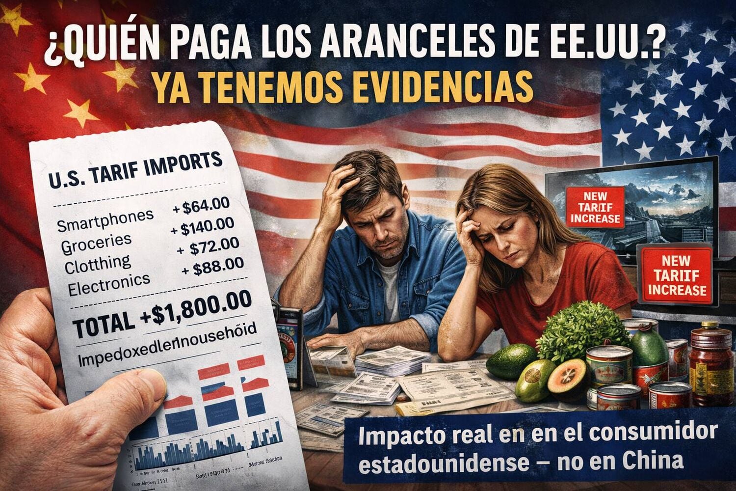 Las familias de ingresos bajos y medios destinan más proporción del presupuesto a bienes necesarios (alimentos, gasolina, ropa) que quedan afectados por estos aranceles. Por eso, el impacto estimado por hogar es tan relevante: entre 1.600 y 2.000 dólares anuales de coste promedio.