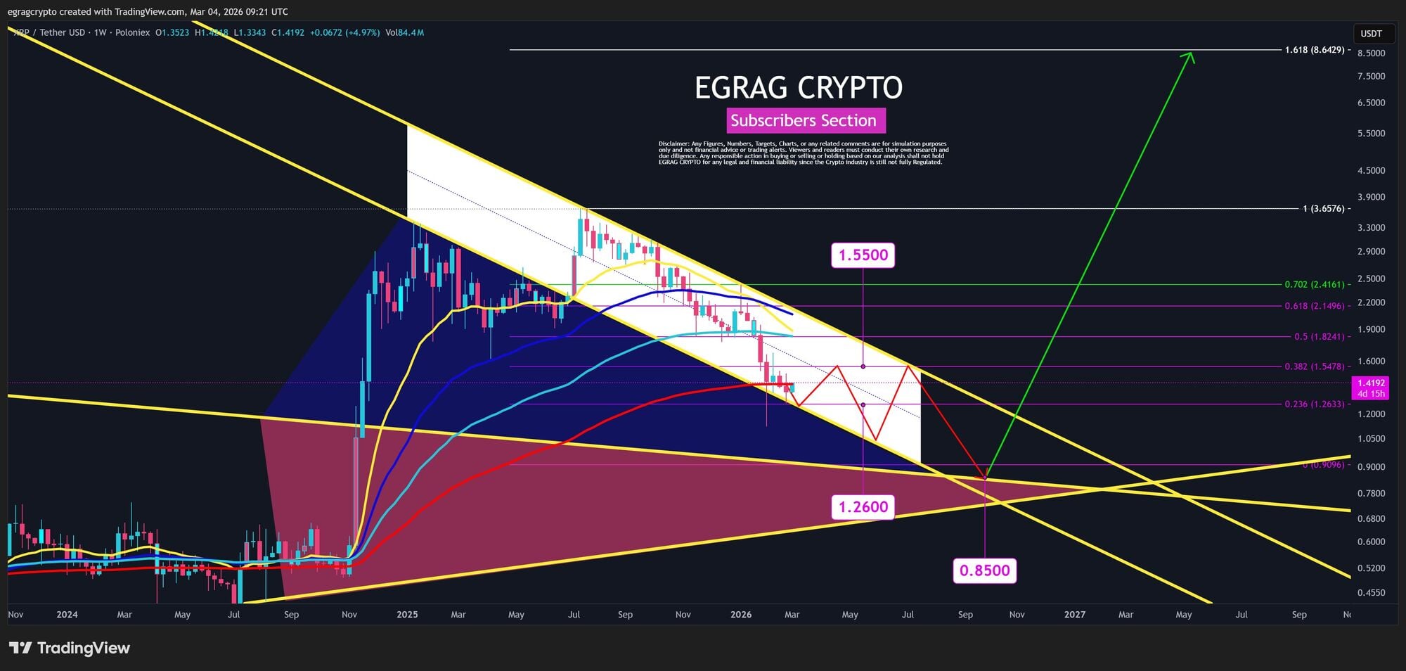 Egrag destaca dos objetivos alcistas importantes para quienes buscan una expansión alcista. En primer lugar, es necesario recuperar y mantener el nivel de 1.55 dólares para consolidar la fortaleza actual. De tener éxito, el siguiente hito importante es un cierre semanal por encima de 2.20 dólares, lo que probablemente desencadenaría un movimiento alcista más agresivo.