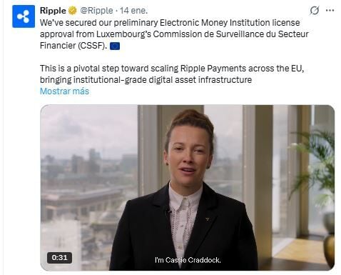Ripple afirmó que este avance constituye un hito crucial en la expansión de su producto Ripple Payments en toda la UE. Con este proceso de licencia, la compañía pretende expandir su infraestructura de activos digitales a nivel institucional en Europa.