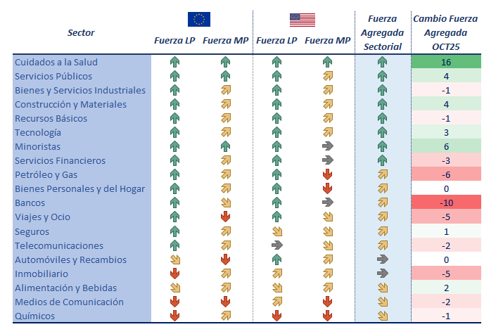 Con la llegada de noviembre arranca el penúltimo mes del año y, como cada mes, actualizamos las fortalezas sectoriales de EEUU y Europa. Una oportunidad para revisar la amplitud de la estructura alcista vigente e identificar nuevas estrategias de inversión.