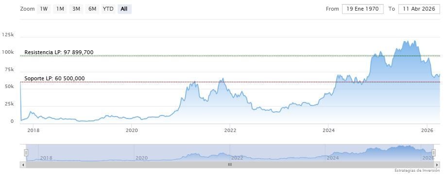 El soporte a mediano y largo plazo se mantiene en los 60.500 dólares. Mientras, los indicadores de Ei se muestran mixtos.