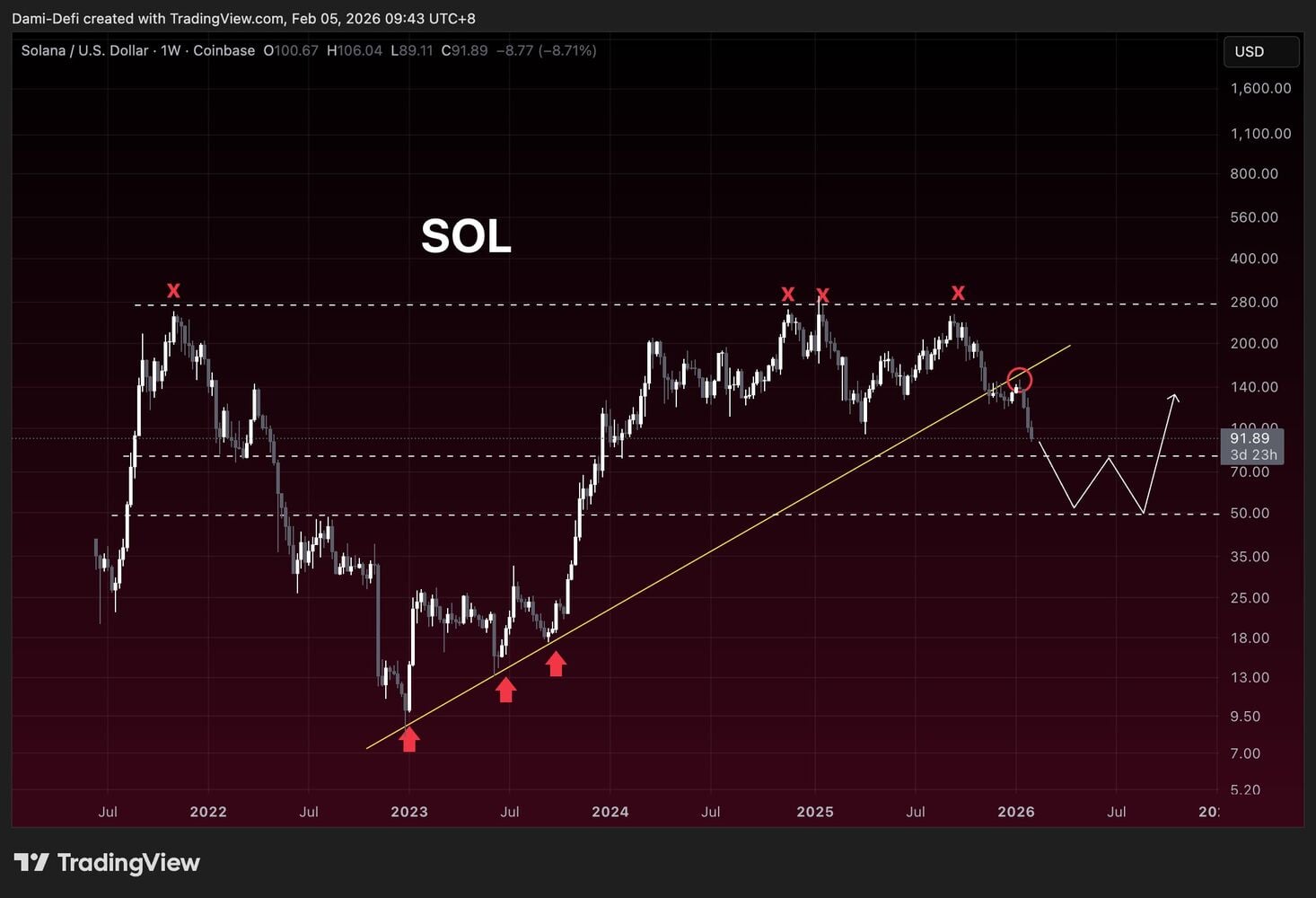 El precio de Solana (SOL) acusa el quiebre de una línea de soporte clave que los operadores defendieron en múltiples oportunidades y rompe con la estructura del mercado de una tendencia de precios a largo plazo que se había mantenido intacta durante casi dos años, según Peter Mwenda en Live Bitcoin News.