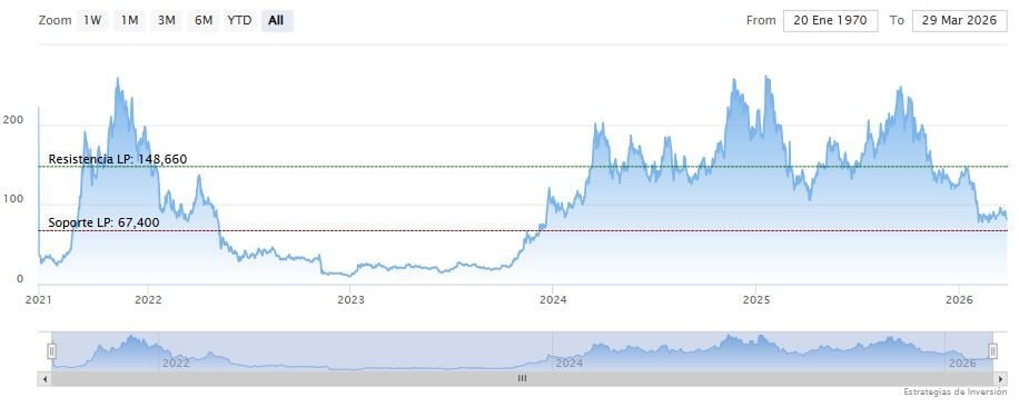 Esto genera un problema. Si la demanda al contado no se recupera durante abril, estos tenedores podrían optar por vender con una pérdida menor en lugar de seguir soportando la caída. Una nueva oleada de ventas por parte de este grupo podría acelerar el movimiento hacia el objetivo de 73 dólares.