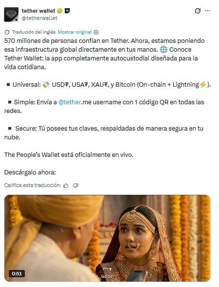 Según el anuncio de Tether en X, la billetera consolida múltiples activos, incluyendo las stablecoins USDT y USAT, Bitcoin y oro tokenizado (XAUT), en una única interfaz. También introduce formatos de direcciones simplificados diseñados para reducir las fricciones en las transacciones.