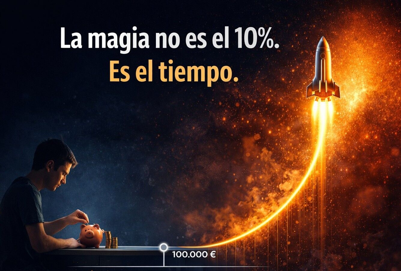 Por eso, cuanto más puedas ahorrar al principio, mucho mejor. Tienes que llegar a esa cifra mágica de 100 mil cuanto antes. A partir de ahí es todo mucho más sencillo y ves los resultados de forma mucho más patente. Pero no te quedes en el intento, que luego todo va muy rápido. Quítate caprichos, elige un coche peor, o utiliza el autobús. Menos cenitas fuera y menos zapatillas de 200 euros. Porque, suponiendo ese 10%, cuando consigues los primeros 100 mil, ya empiezas a generar casi 1.000 euros al mes.