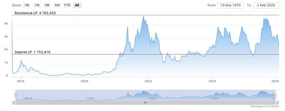 El soporte a largo plazo se encuentra en los 1.752 dólares. Mientras, los indicadores de Ei se muestran mixtos.
