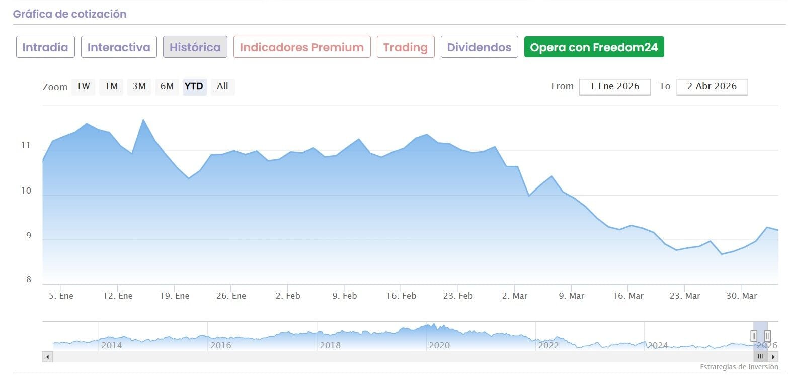 Desde la media de Reuters consideran que es una compra de media para los analistas consultados, con precio objetivo de consenso que marca los 15,61 euros por acción y progresión del 69%.