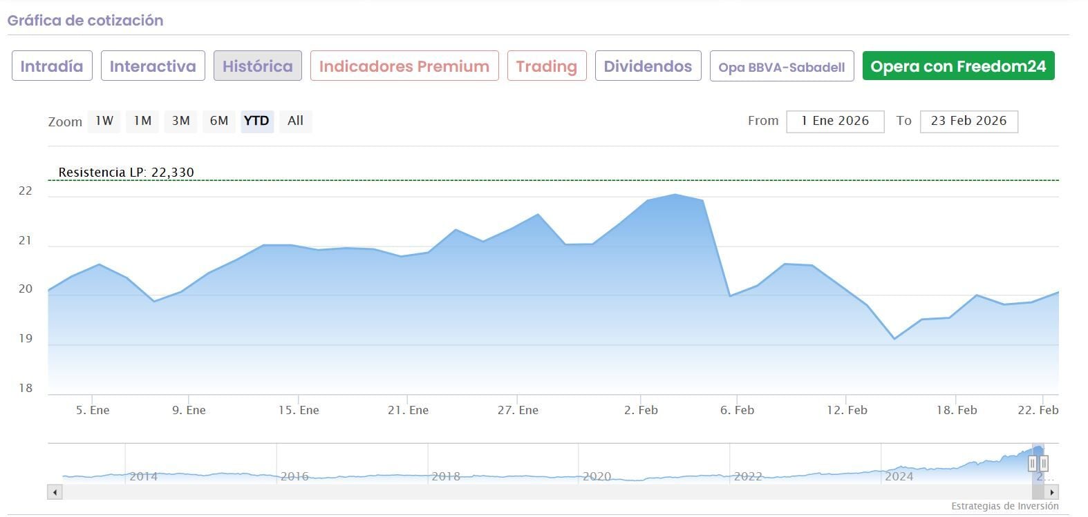 La entidad cántabra presenta mejor recorrido anual que BBVA, ya que avanza un 8,5% en lo que llevamos de 2026, frente al nivel neutro que demuestra en el ejercicio bursátil actual el banco vasco.