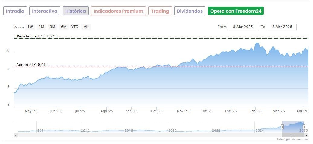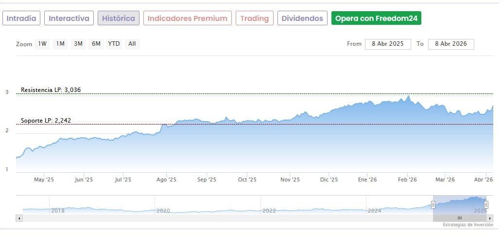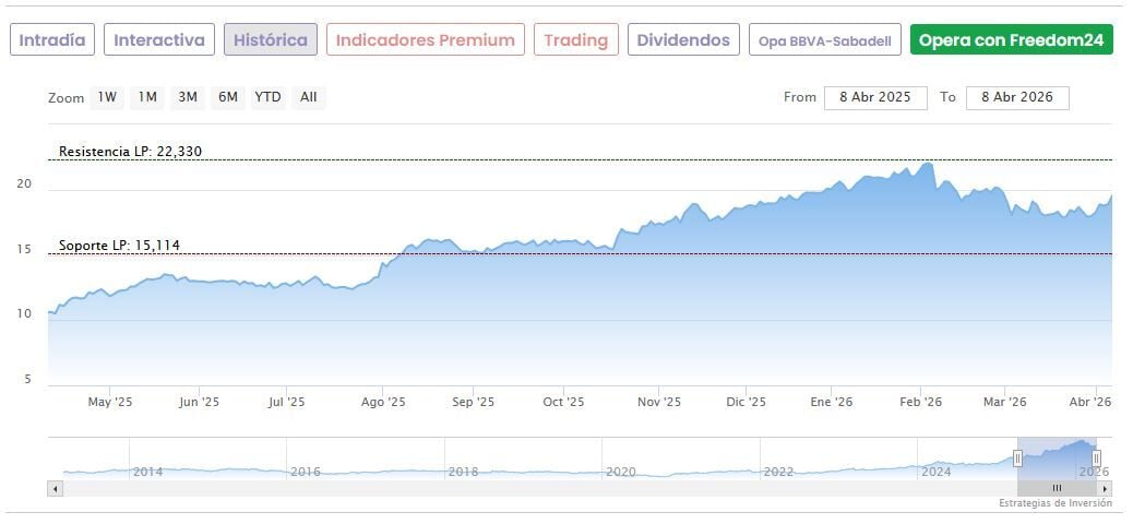 Hoy las acciones del banco andaluz bajaban a primera hora de la mañana un 0,22% hasta los 2,718 euros. Registran una caída de un 10,47% desde que el 3 de febrero tocaron máximos históricos en 3,036 euros, pero todavía suben un espectacular 117,4% desde sus mínimos de abril del año pasado (1,25 euros).