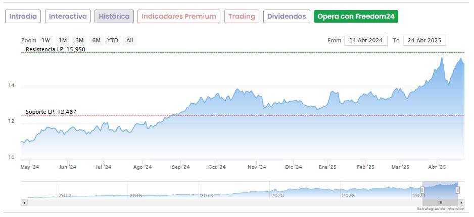 Y el valor todavía tiene recorrido alcista por delante. O al menos así lo consideran los analistas de Alantra Equities, que le han elevado el precio objetivo hasta los 16,90 euros por acción, desde los 16,70 euros anteriores. La recomendación es de comprar. Esta valoración implica un potencial alcista del 10,20% frente al cierre de ayer jueves.