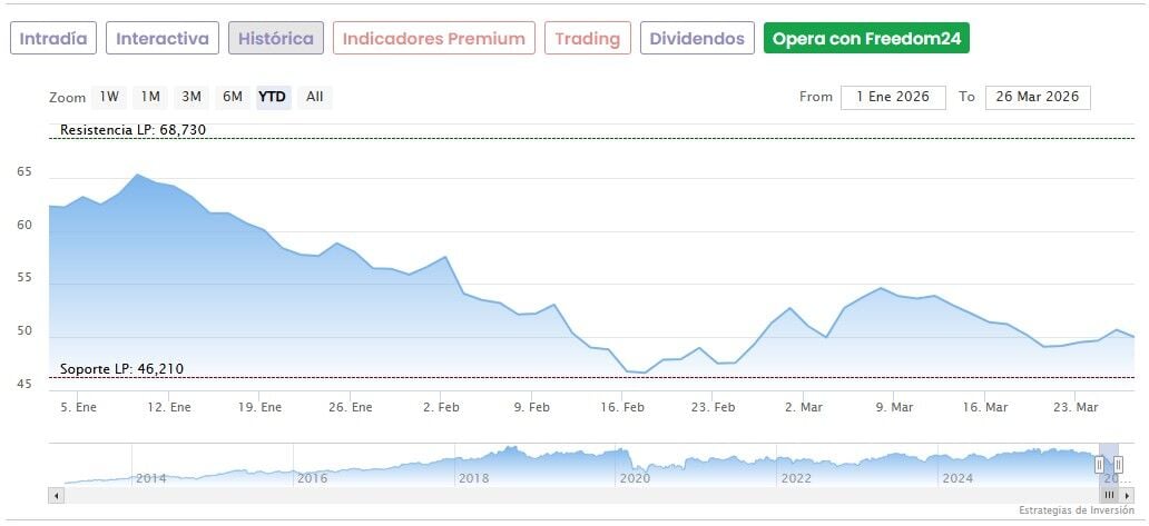 La buena noticia es que han rebotado un 8,16% desde que el pasado 17 de febrero marcaron mínimos en 46,21 euros.