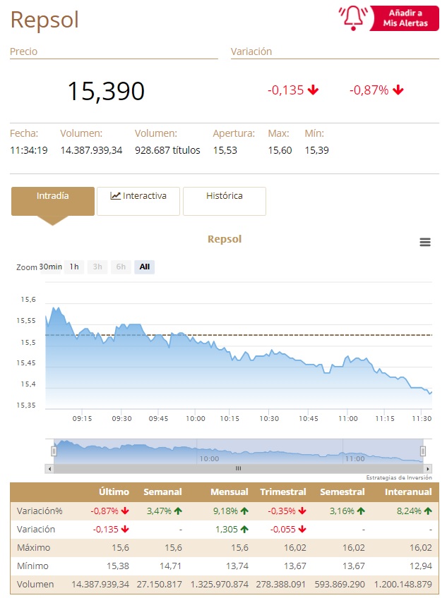 Los títulos de Repsol tienen una rentabilidad por dividendo del 5,3%, y un ratio precio-beneficio (PER) de 10,49 veces al cierre del año, mientras que en 2018 la previsión es que se encarezcan hasta las 10,83 veces.