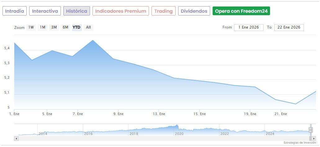 A pesar de esta mejora, supone un potencial alcista de apenas un 2,34% frente al cierre del jueves. Las acciones de Colonial han tenido un mal comienzo de año, acumulando una caída del 6,4% en estas tres primeras semanas de enero.