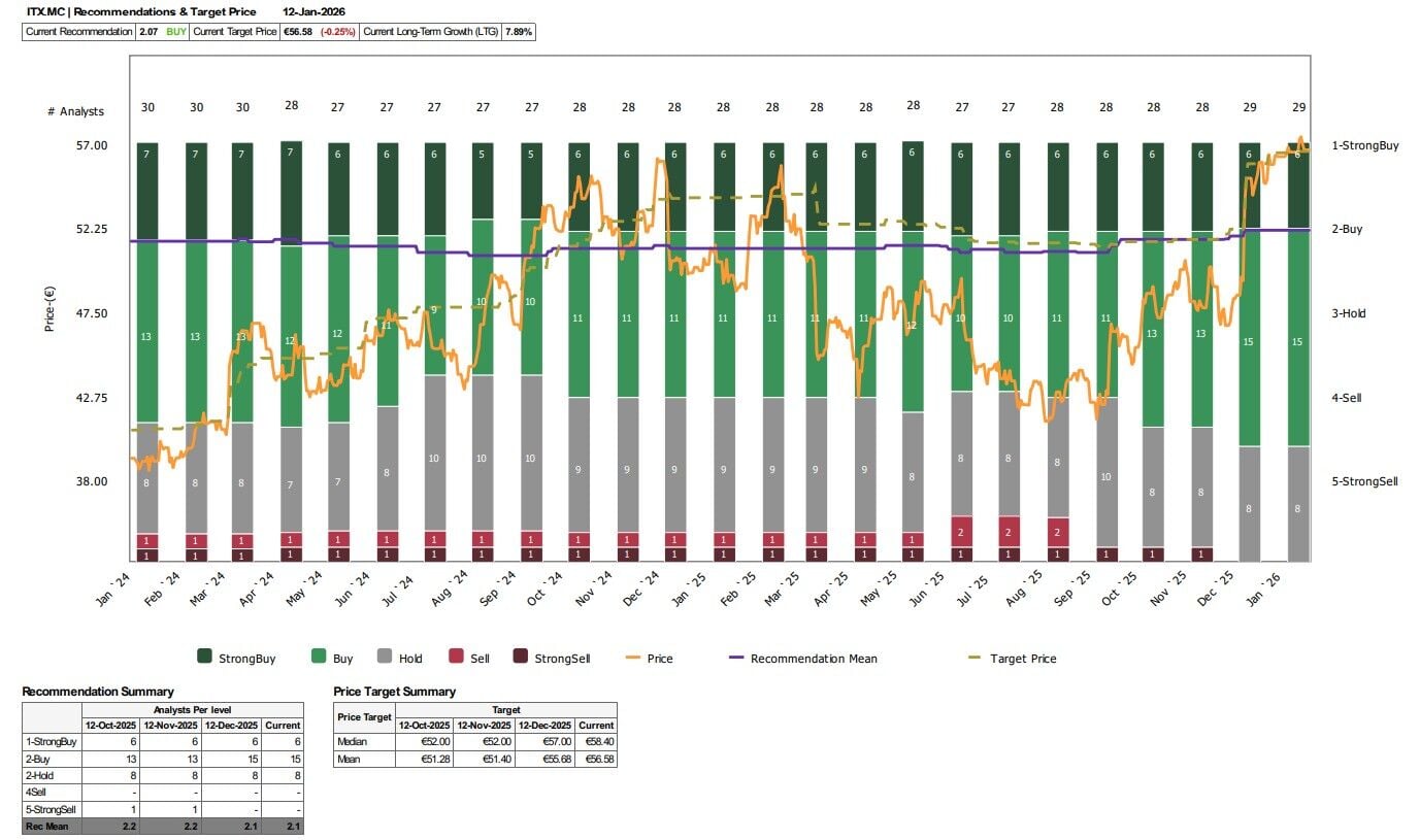 Todo ello con la recomendación de sobreponderar el valor en las carteras, aunque en Inditex, según el consenso que recoge Reuters gana por goleada la calificación de compra sobre el valor sin ninguna apuesta de venta por las acciones del gigante textil global.