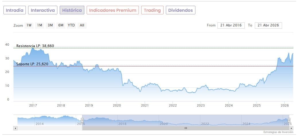 Hoy las acciones de Técnicas Reunidas suben a media mañana un 1,70% hasta marcar 35,90 euros en el Mercado Continuo. Acumulan una subida de un 30% en lo que va de 2026, incluso después de haber corregido un 7,10% desde que el 27 de febrero tocaron un máximo anual en 38,66 euros. En los últimos 12 meses, la subida es de un 158% desde los mínimos de las últimas 52 semanas en 13,93 euros el 22 de abril de 2025.