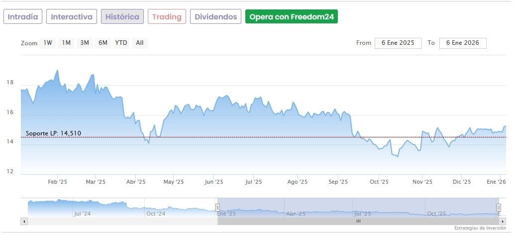 Hoy las acciones de Puig Brands han abierto a la baja, con una caída en los primeros compases de la negociación de un 1,25% hasta marcar 15,05 euros en el IBEX 35.