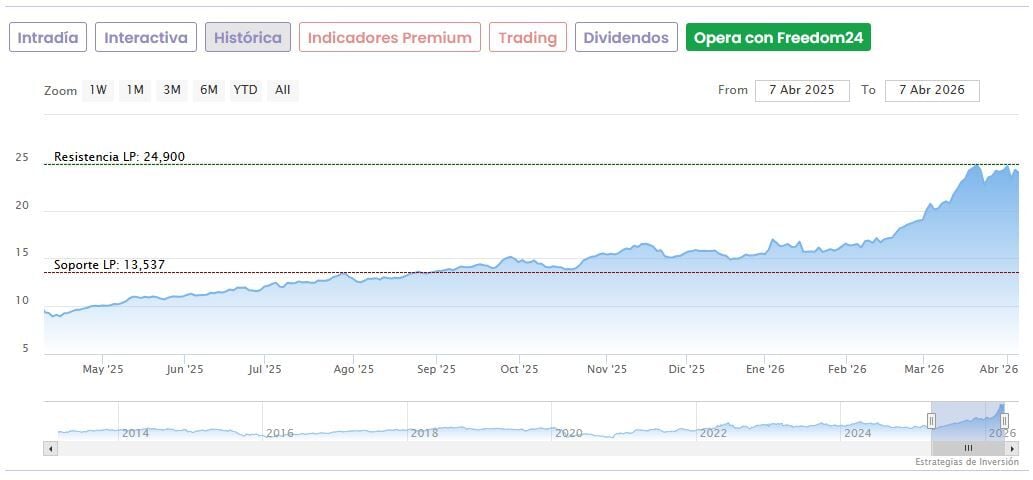 No obstante, hay que tener en cuenta que suben todavía un 37,8% en lo que va de 2026 y nada menos que un 133% desde los mínimos de 9,414 euros de abril del año pasado.