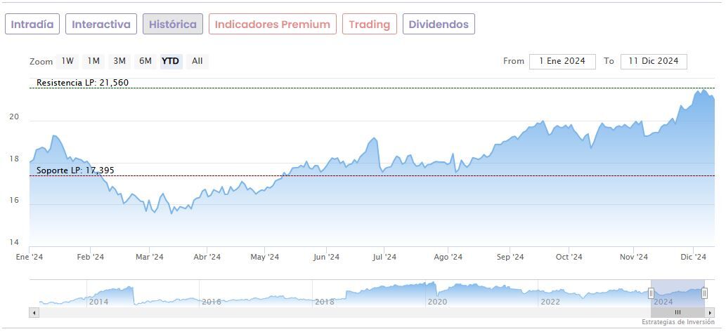 A dos semanas de finalizar el año, las acciones de Endesa han acumulado una revalorización de un 15,8% en 2024, un comportamiento que ha permitido elevar la capitalización bursátil hasta los 22.000 millones de euros. Los títulos conquistaron unos máximos anuales de 21,47 euros el pasado 5 de diciembre.