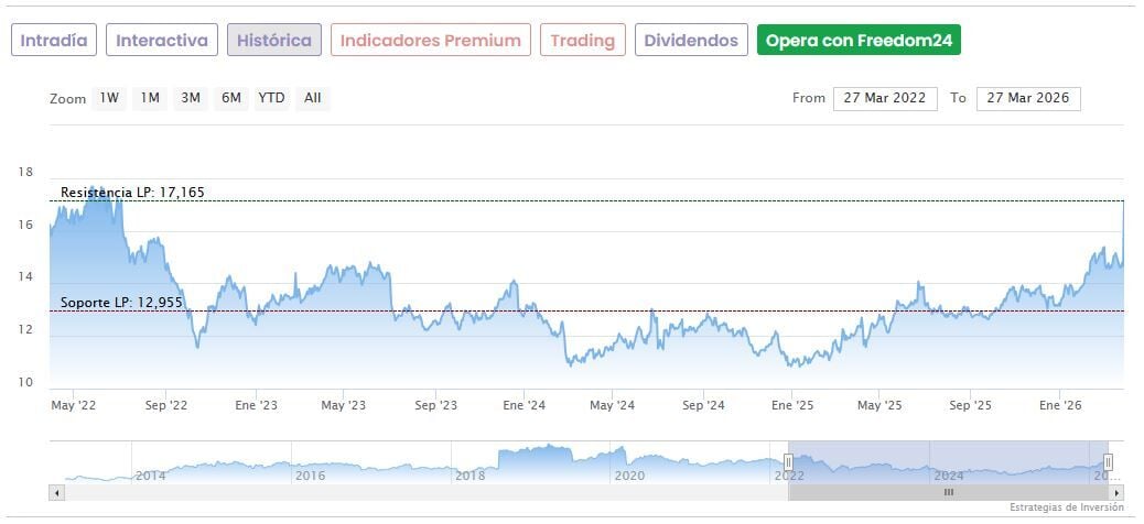 Los títulos acumulan de este modo una subida de más de un 30% en lo que va de año, y de más de un 40% desde sus mínimos de las últimas 52 semanas, fijados en los 12,30 euros desde abril del año pasado.