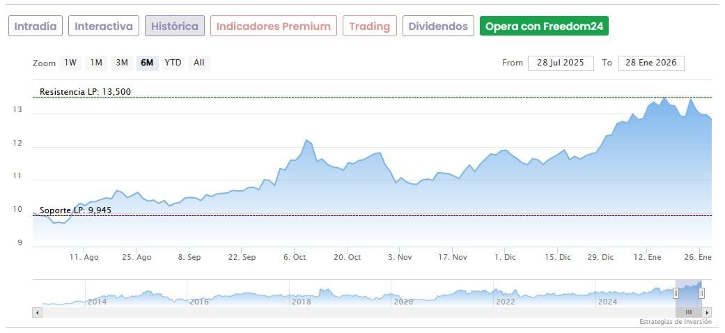 La nueva valoración implica un potencial negativo de un -18% frente al cierre de ayer y se deja notar sensiblemente en la cotización de este jueves: las acciones caen a primera hora de la mañana un 2,10% hasta los 12,54 euros.