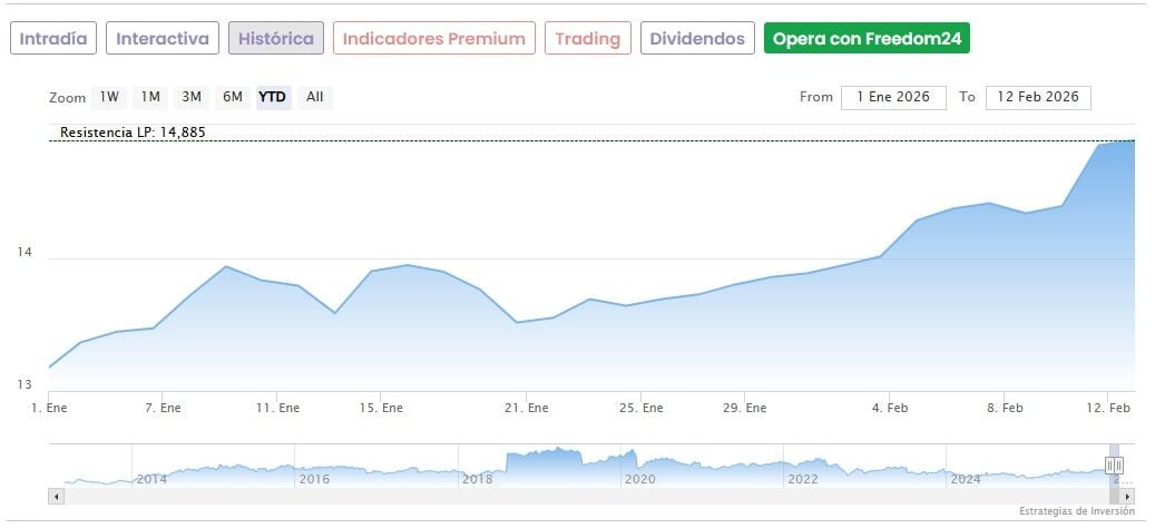 A pesar de los ligeros descensos de hoy, las acciones de Enagás suben todavía un 12,77% en lo que va de 2026, un comportamiento muy superior al que está registrando el Ibex 35 (+3,3%). Los títulos llegaron a tocar ayer un máximo de las últimas 52 semanas en un cruce de 14,885 euros. Analizando este mismo período, suben un 25,36% desde sus mínimos, fijados en los 11,83 euros desde el 25 de febrero del año pasado.