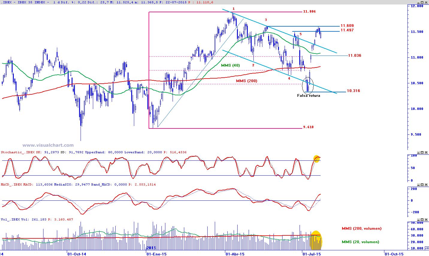 Los más destacable por tanto de la jornada de hoy, es que registramos el segundo cierre consecutivo por debajo de los 11.497 puntos y que los grandes índices europeos como son DAX 30 y EuroStoxx 50 siguen alejándose de los máximos del mes de JUN15, nivel que ya hemos comentado en varias ocasiones consideramos referencia a medio plazo.