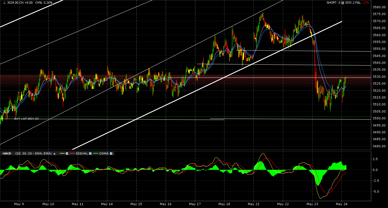 La estrategia sería vender en los 3540, con stop de 10 puntos, buscando una vuelta hacia los 3500.