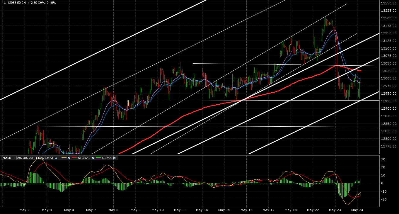 La estrategia sería vender en los 13050, con stop de 50 puntos, y objetivo en los 12850.