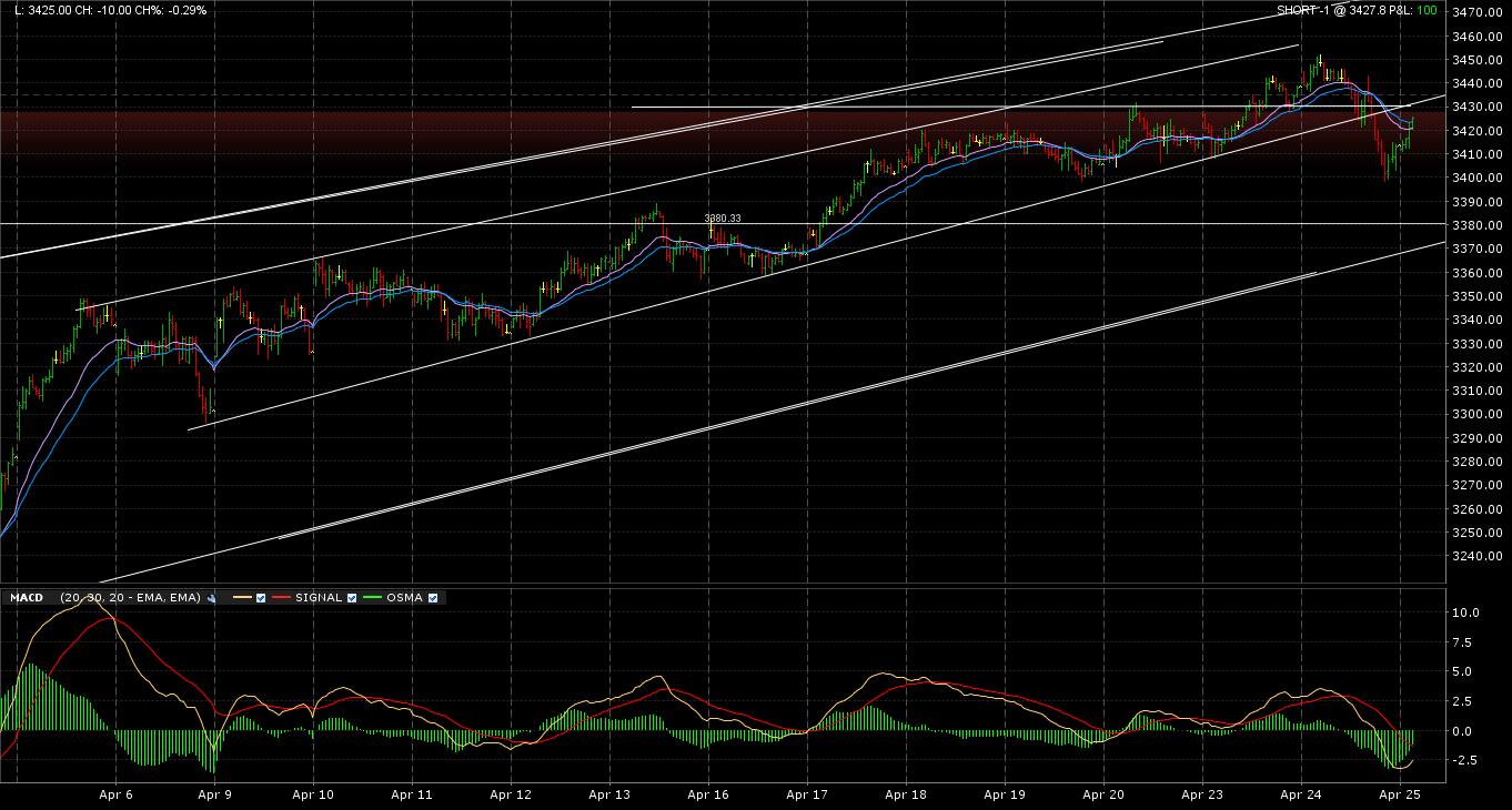 Como estrategia habría que vender en los 3425 - 3430, con stop de 10 puntos y objetivo de 40.