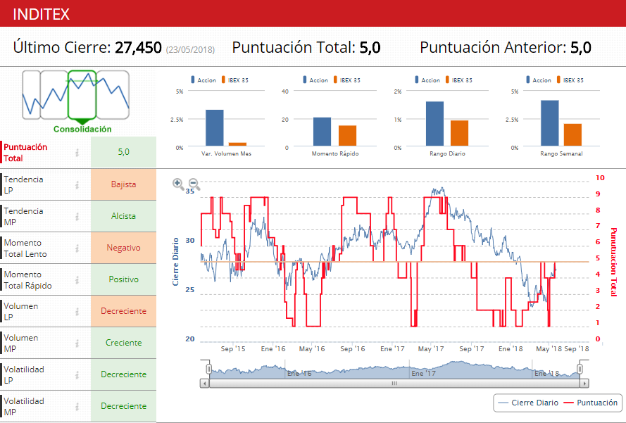 Filtros técnicos de Inditex a 23 de MAY18