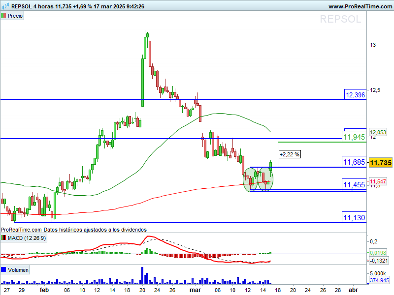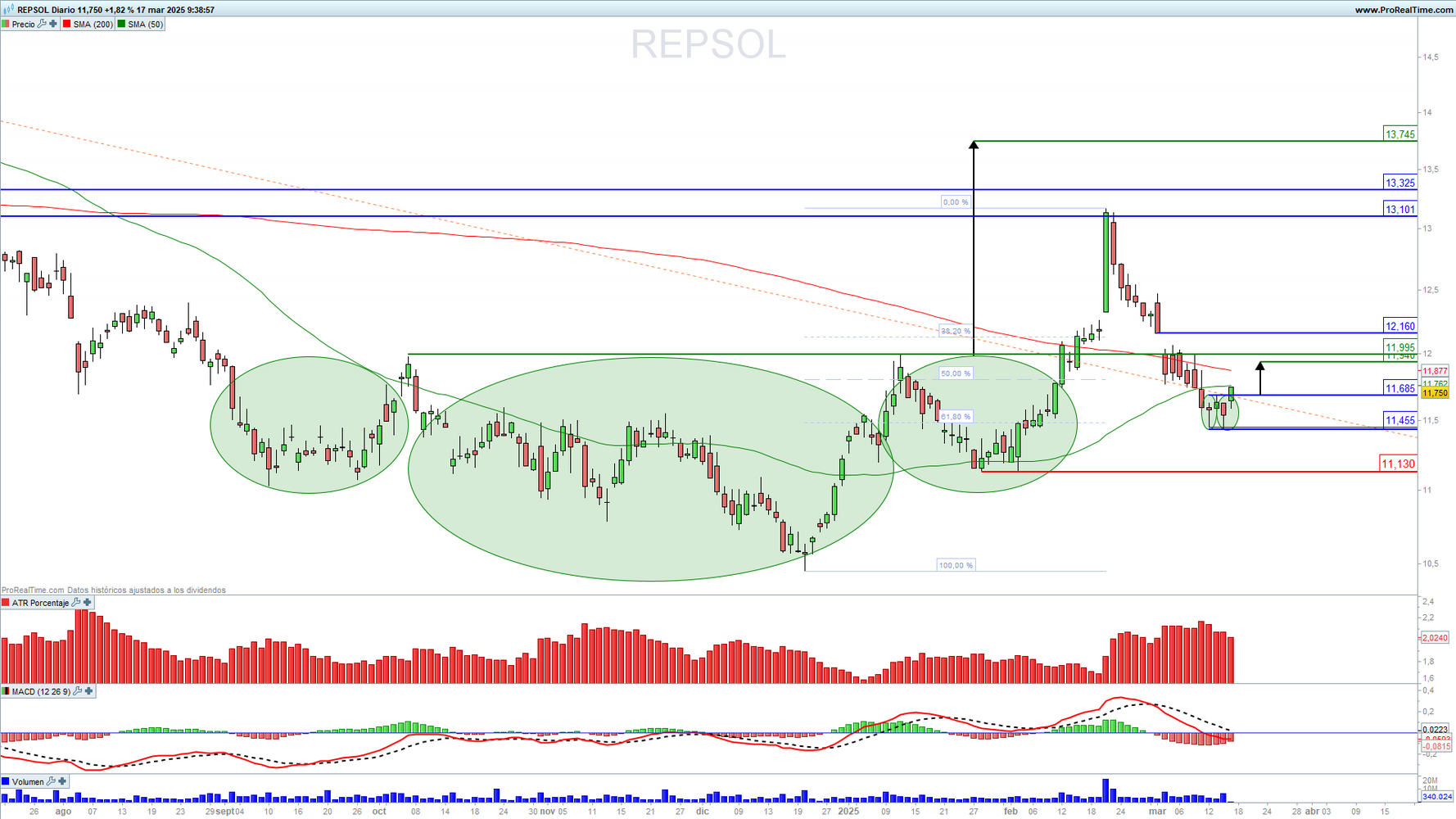 La cotización de Repsol comienza a mostrar signos de haber de encontrado soportes en el área de los 11,435 y los 11,455€ por acción, de modo que, tras las caídas producidas durante las últimas semanas, el activo inicia la semana activando un objetivo alcista.